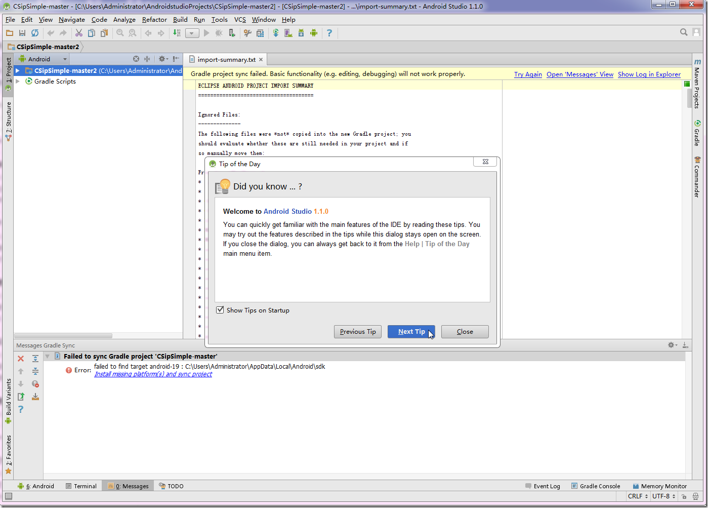 【已解决】Android Studio导入CSipSimple项目时出错:Library reference ..\ActionBarSherlock could not be found