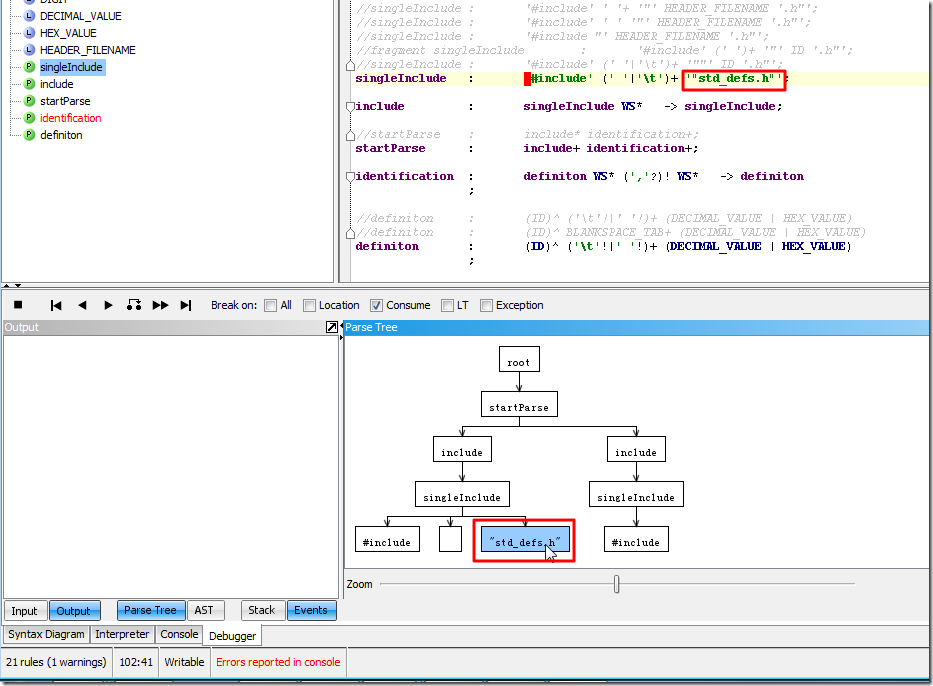 singleInclude : '#include' (' '|'\t')+ '"std_defs.h"';试试效果。
