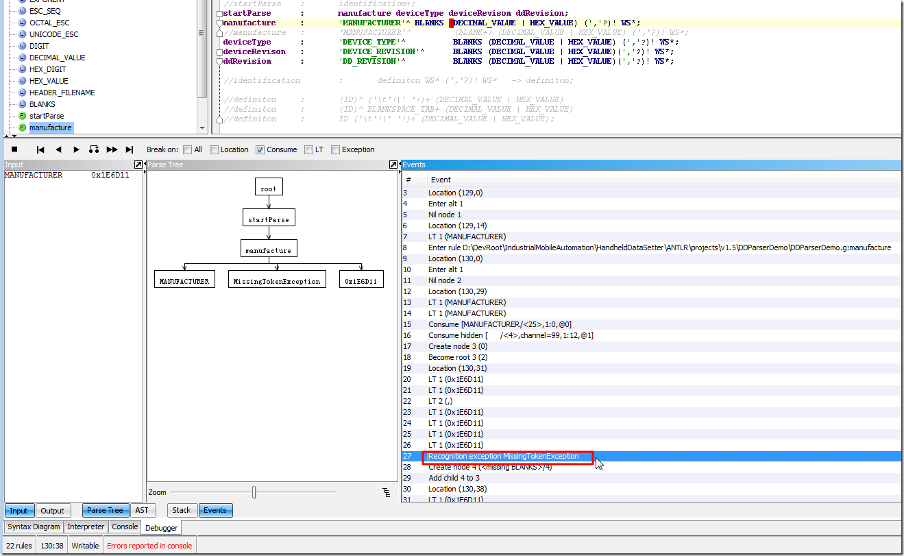 此MissingTokenException,可能是antlr(或antlrworks)的bug。