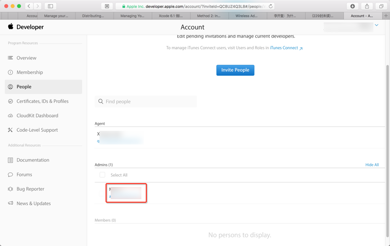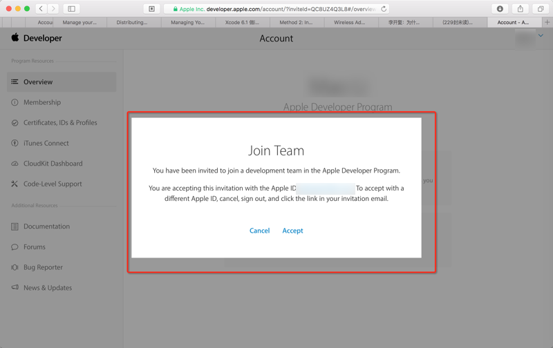 期间,别人已经发送邀请了,邀请我到账号,apple id,为Team Admin