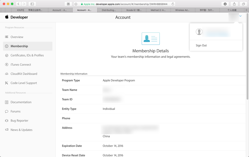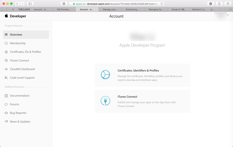 通过Apple Developer Center中,登录自己的账号