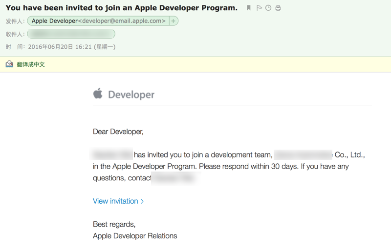 Dear Developer, Xixxxxx has invited you to join a development team, xxx Automotive Co., Ltd., in the Apple Developer Program. Please respond within 30 days. If you have any questions, contact Xiaotian Wei. Best regards, Apple Developer Relations |