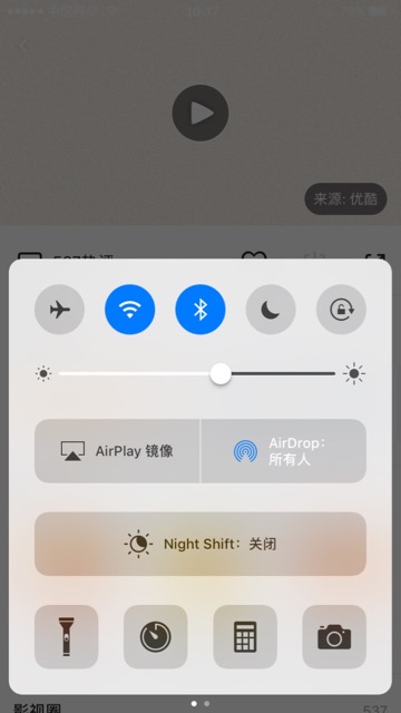 从屏幕底部向上滑动后,可以出现对应菜单,看到AirPlay镜像