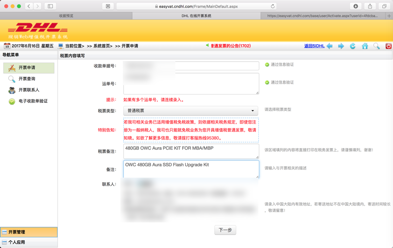 转载请注明:在路上 » 【记录】申请DHL寄送发票