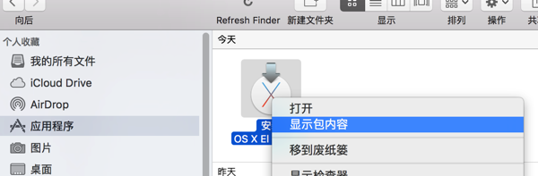 此处,从App Store中,下载下来了OS X EI Caption安装程序后,无法直接看到对应的app文件。