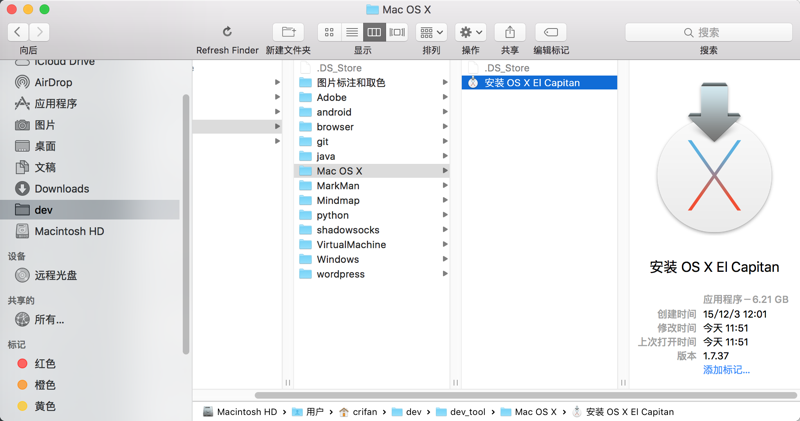 转载请注明:在路上 » [已解决]如何获得从AppStore中已下载的Mac的OS X EI Caption系统安装镜像文件Install OS X El Capitan.app