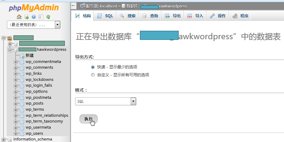 登陆cpanel中,通过数据库导出的办法去备份数据库了。