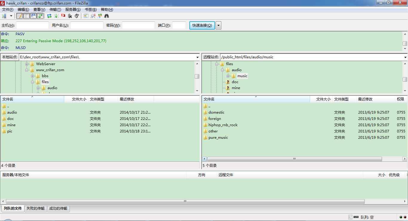 1.先去备份之前的主机上的内容。用Filezilla FTP软件,去下载备份原先hawkhost上的crifan.com上面的文件。