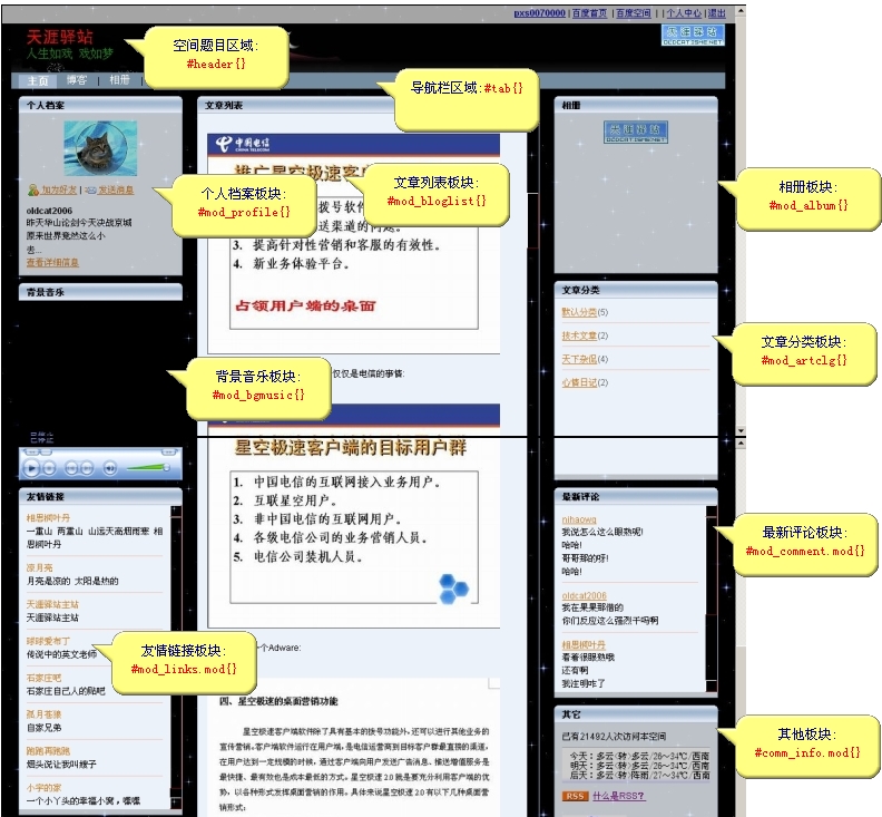 各模版ID请参照链接:百度空间CSS说明