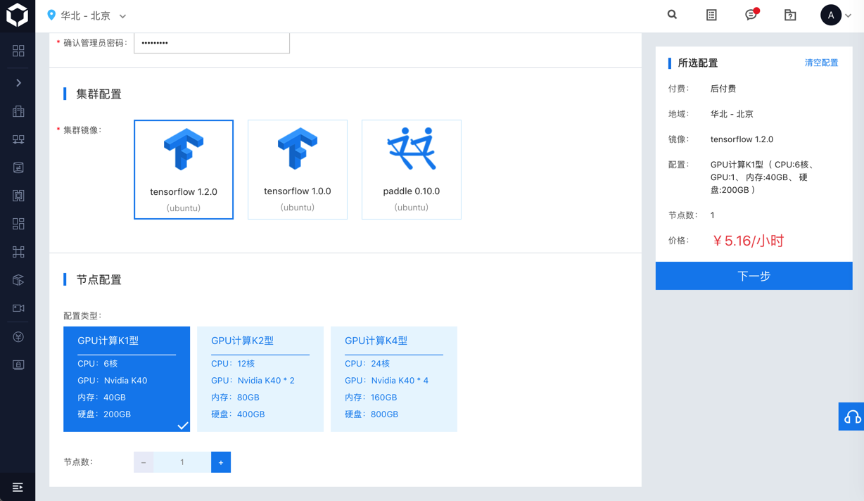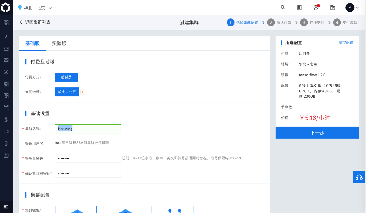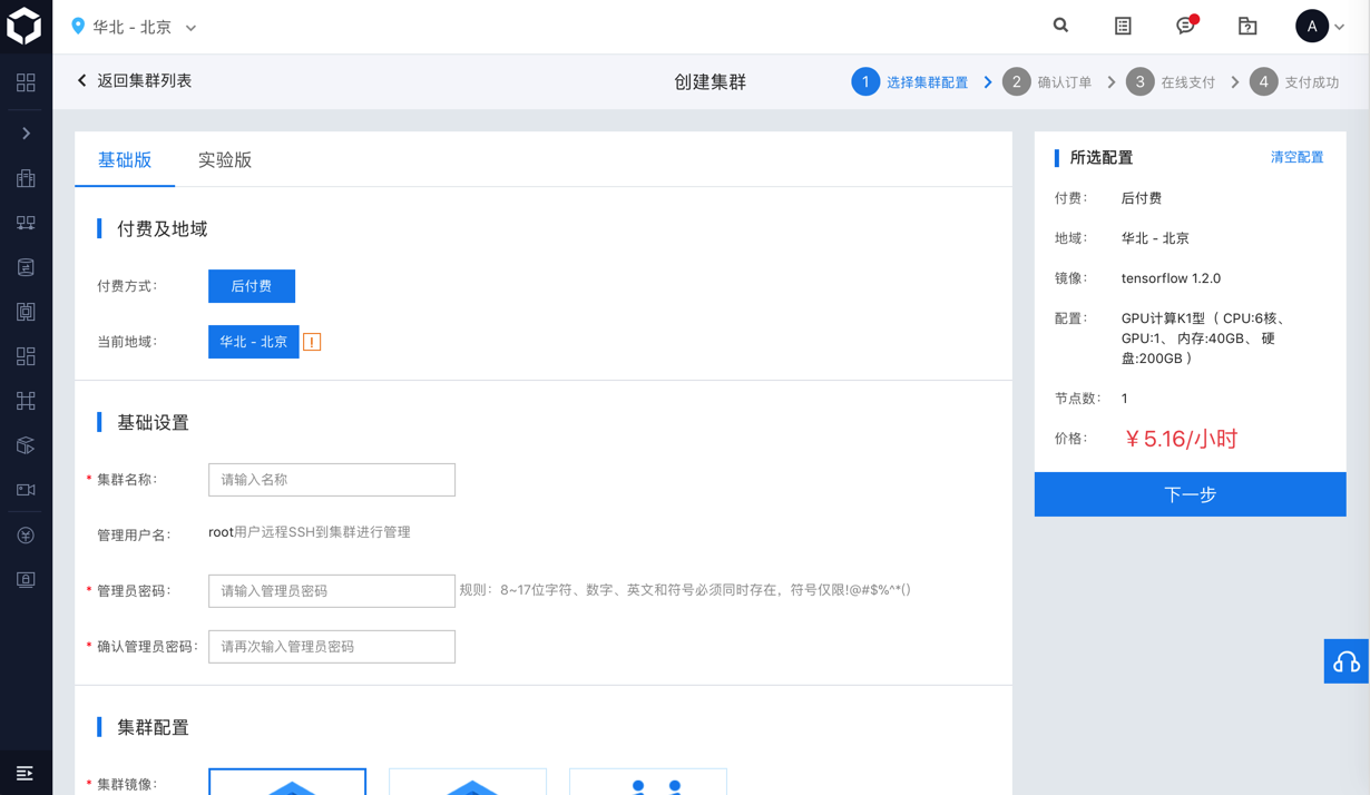 * 集群准备:帮助您选择并创建您所需要的开发环境;