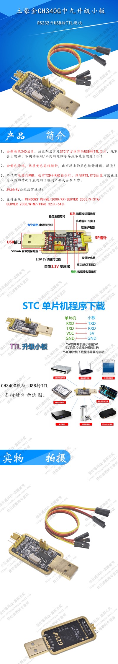 PL2303串口升级模块USB转TTL升级板CH340带外壳FT232下载刷机线-tmall.com天猫