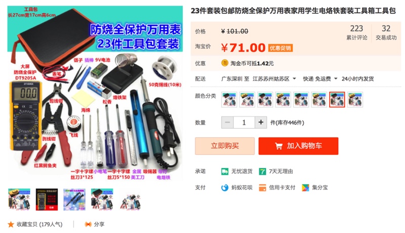 23件套装包邮防烧全保护万用表家用学生电烙铁套装工具箱工具包-淘宝网