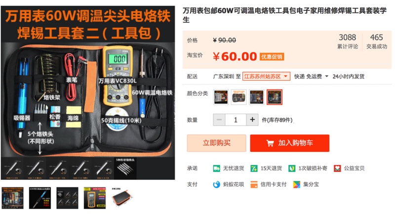 万用表包邮60W可调温电烙铁工具包电子家用维修焊锡工具套装学生-淘宝网