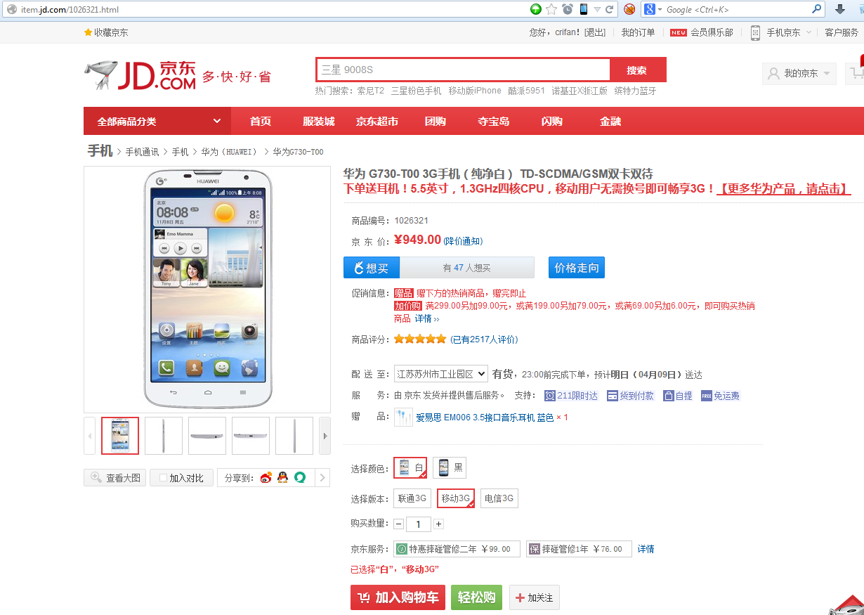 转载请注明:在路上 » 【记录】购买华为手机G730-U00 3G手机(纯净白)联通版