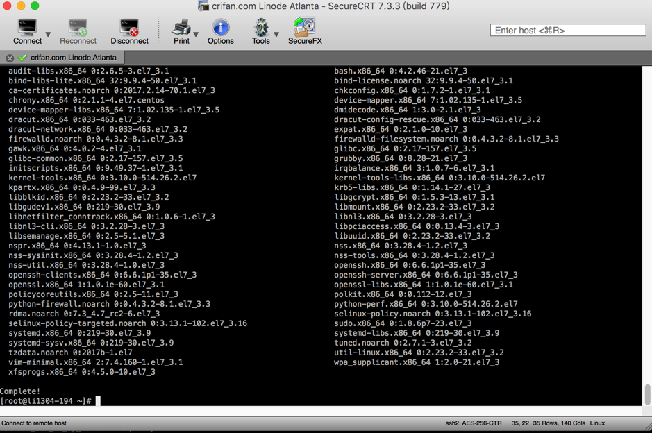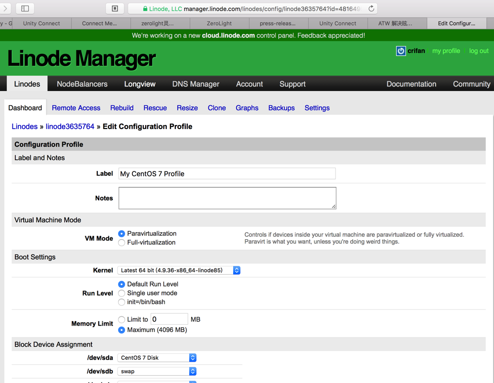 My CentOS 7 Profile (Latest 64 bit (4.9.36-x86_64-linode85)