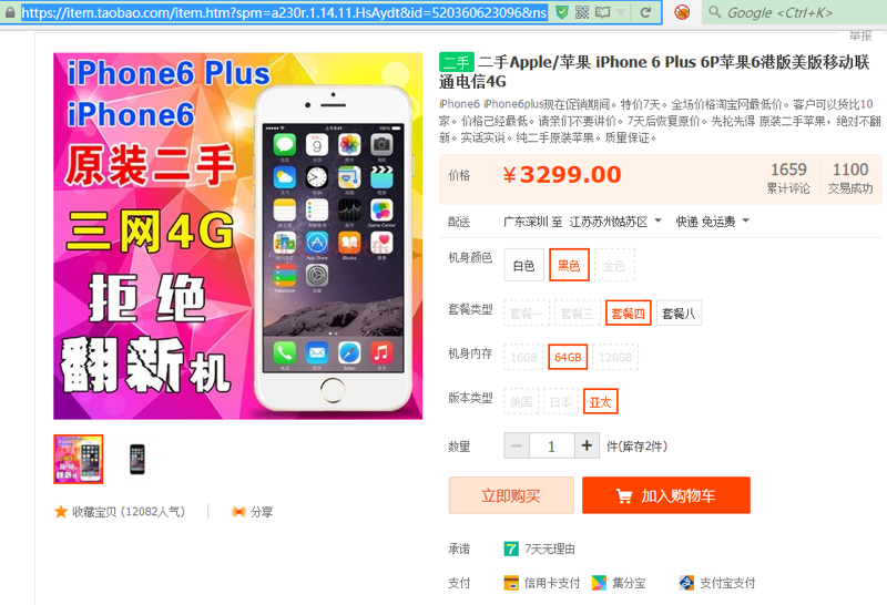 二手Apple/苹果 iPhone 6 Plus 6P苹果6港版美版移动联通电信4G-淘宝网