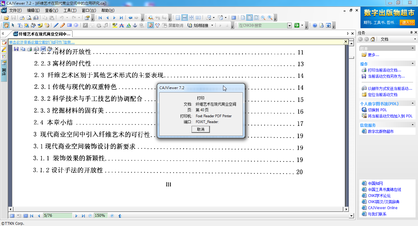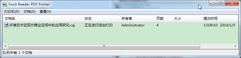 在用CAJ软件打开CAJ文件后,通过去打印,使用PDF打印机(Fox Reader福昕阅读器),即可把CAJ文件转换为PDF文件。