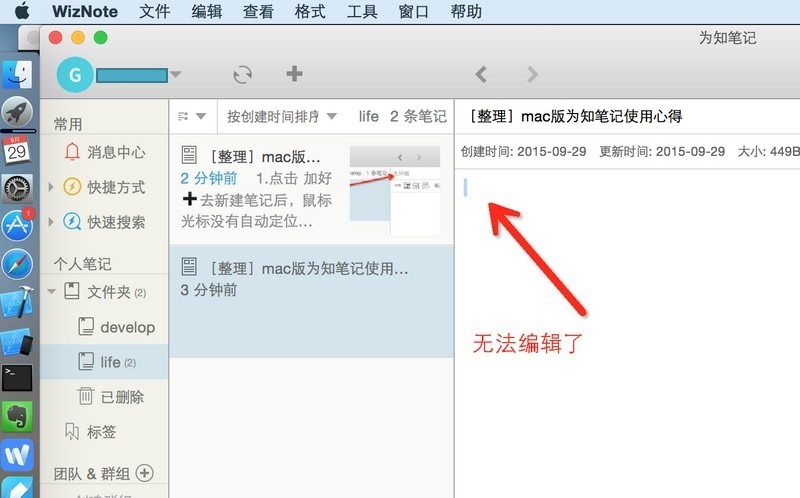 【问题】 mac中使用为知笔记期间,时不时的,经常的,发生:笔记无法编辑的情况: 后来才发现,结果是: 笔记被同步了之后,自动上锁,所以无法编辑了: 点击上锁的图标,即可切换为 编辑模式: 进入编辑模式后,才可以编辑: 但是很...