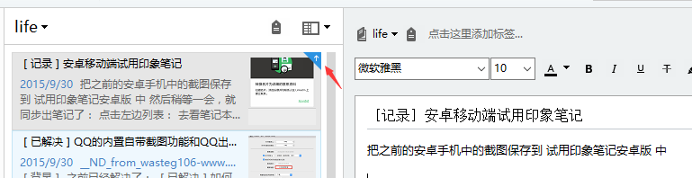把之前的安卓手机中的截图保存到 试用印象笔记安卓版 中 然后进入到主界面: 默认显示 所有笔记 然后稍等一会,就同步出笔记了: 去使用试试, 点击左边列表: 去看笔记本: 标签: 探索印象笔记: 设置: 点击右上角的三个点,可...