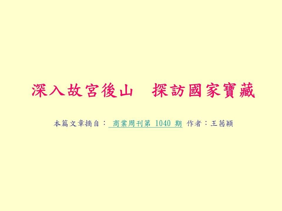 之前就看过,那个(记不清叫啥名)凤凰大视野出的,关于国家,从北京,颠沛流离,运到台北,后来报关于新建的台北故宫的事情。 最大感慨是: 幸好是弄到台北故宫,否则,放在北京故宫,不知道会被内部人员偷掉多少。 从文化保存方面来说,算是个大好事了。 现在,推...