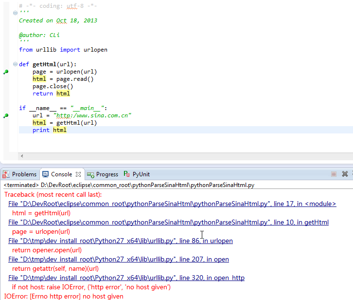 【问题】 为了回答: python解析网页源代码返回乱码问题 的问题,折腾: 【问题解答】python解析网页源代码返回乱码问题 期间,在PyDev中写了段代码: # -*- coding: utf-8 -*- ''' Created on Oct...