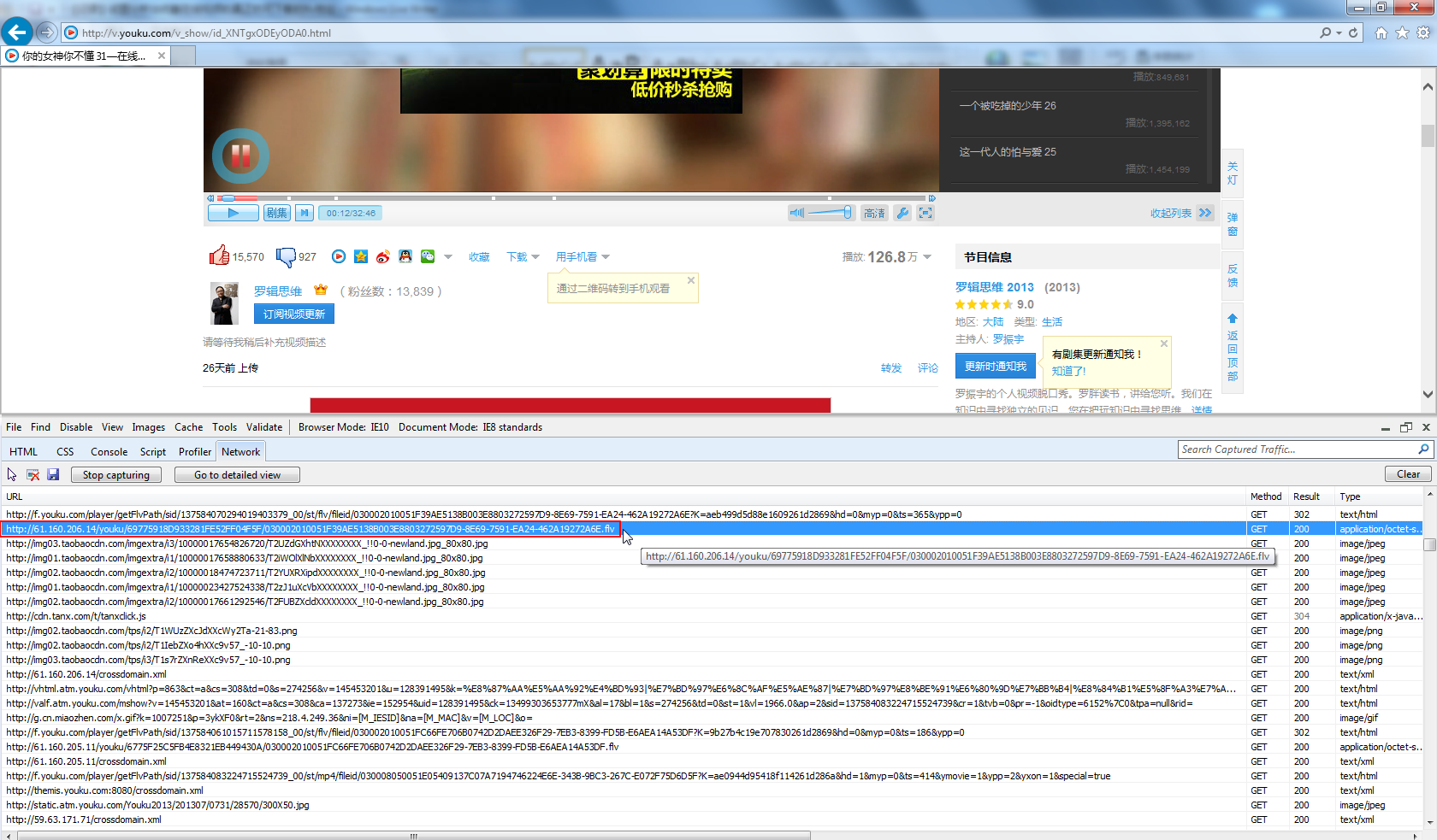 【背景】 折腾: 【记录】开发在线视频下载器OnlineVideoDownloader的过程 期间,需要先去分析优酷的flv真实地址。 【折腾过程】 1.继续用IE9的F12去分析。 现以 http://v.youku.com/v_show/id_X...