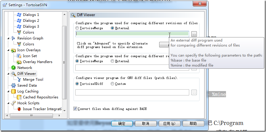 - Change the radio buttons from TortoiseMerge to External.