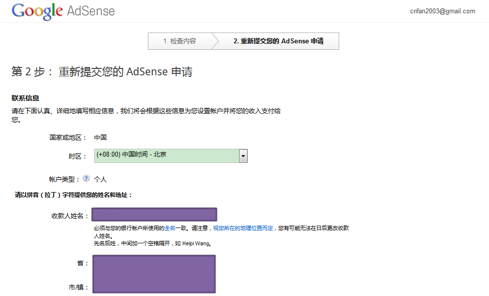 对应的,确保之前申请AdSense时填写的信息也是对的: