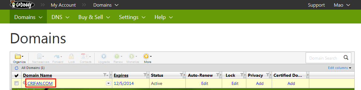 点击Domain Name:CRIFAN.COM