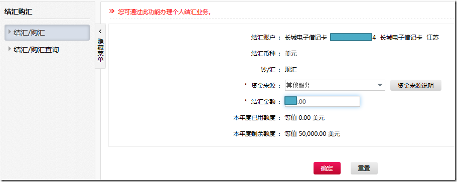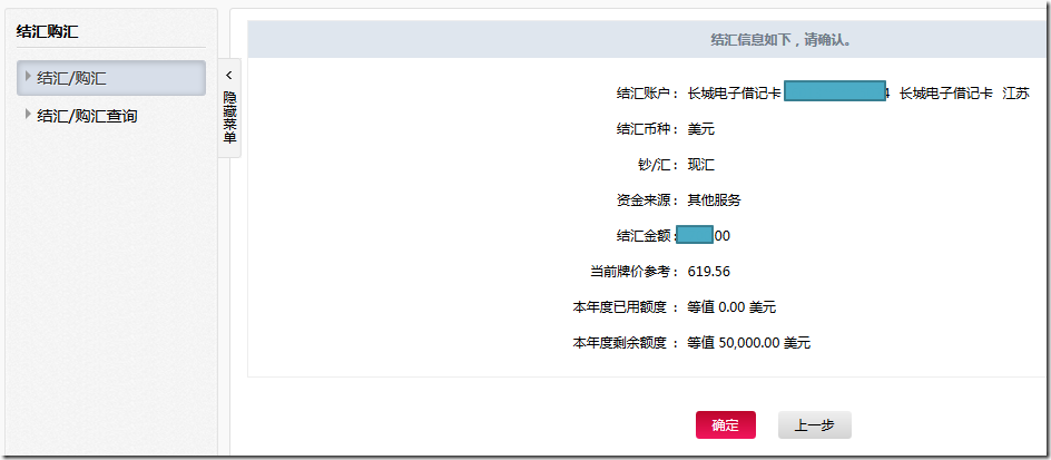 然后在 结汇金额 处,输入要卖掉的金额,点击确定: