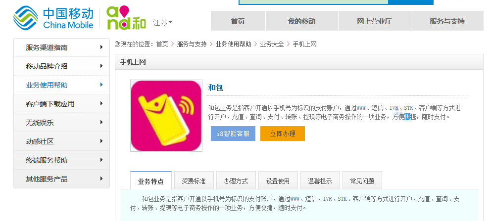 一、和包业务适用于中国移动网内所有客户(神州行标准卡客户暂时不能使用)及联通、电信客户。一卡双号的副号无法开通和包业务。