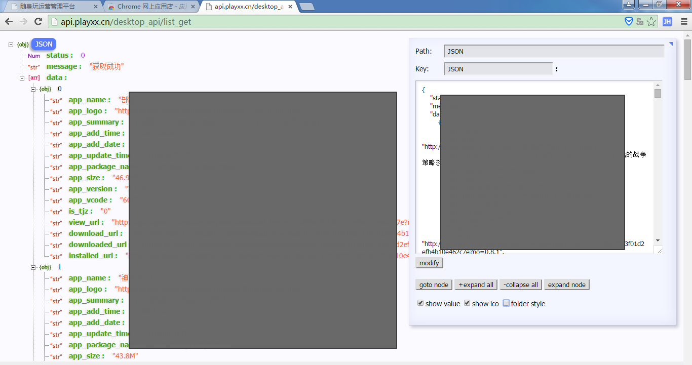2.然后就可以在Chrome看很漂亮的,格式化好了之后的json数据了:
