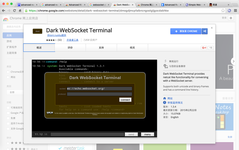 https://chrome.google.com/webstore/detail/dark-websocket-terminal/dmogdjmcpfaibncngoolgljgocdabhke
