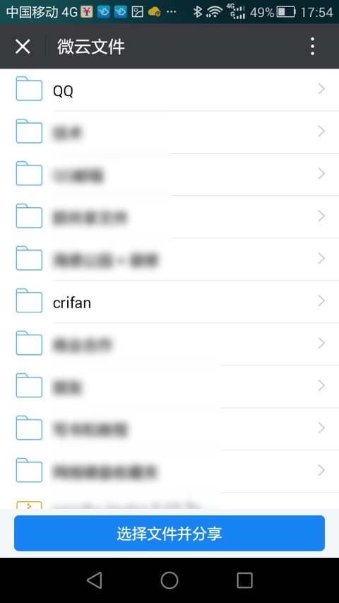 微信版的微云,都提供了入口,支持查看文件并共享: