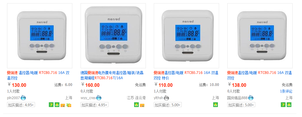 温控器:曼瑞德 rtc80.713 报价326 淘宝价 115 三个的差价就有211*3=633元