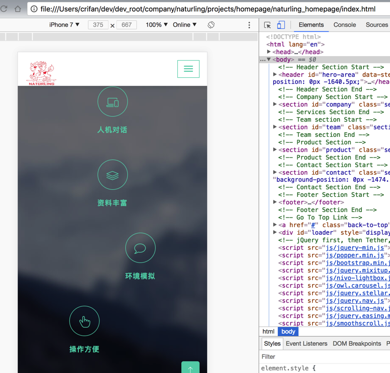 之前的主页是参考别的Html5的单页面模板: