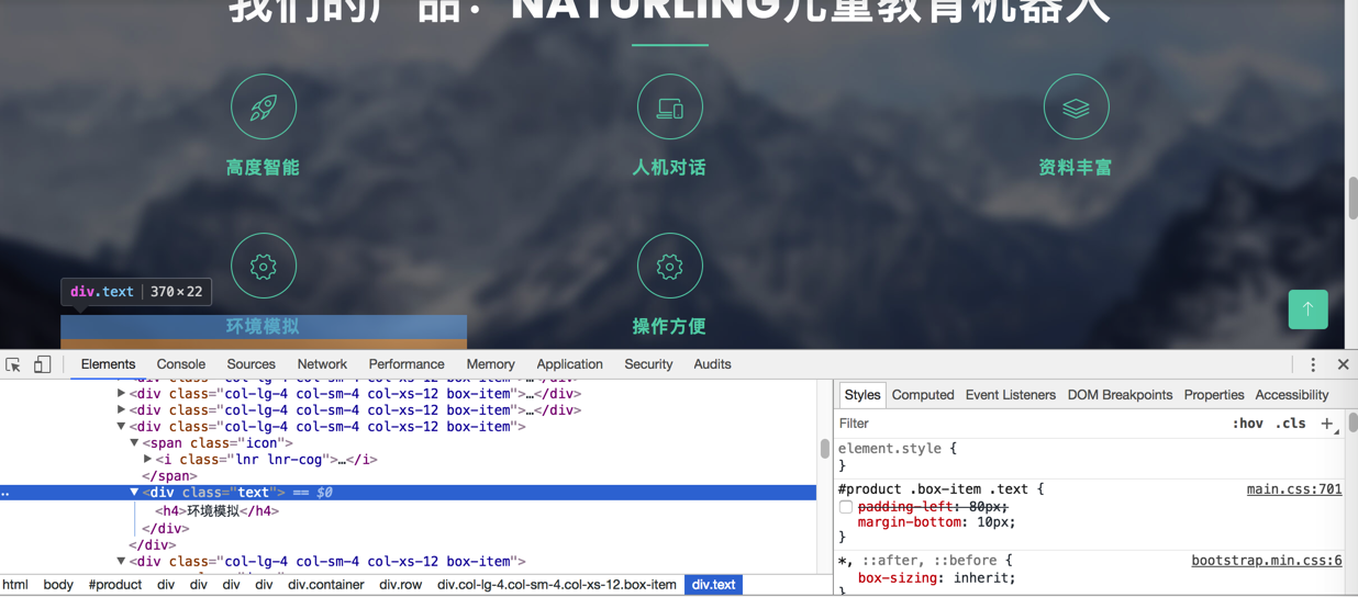 &lt;h2 class="section-title"&gt;我们的产品:NaturLing儿童教育机器人&lt;/h2&gt;