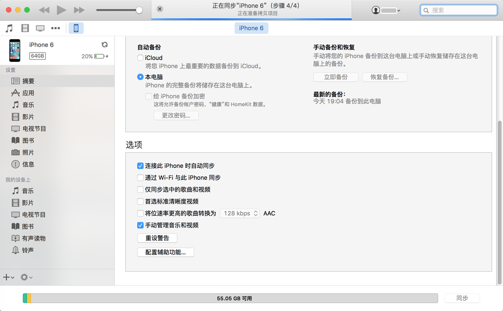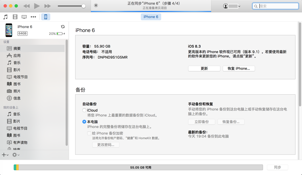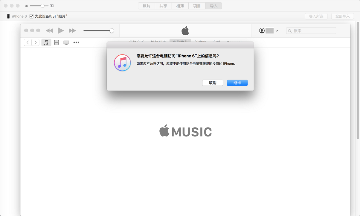 把iPhone6,通过lighting数据线,连接到Mac中
