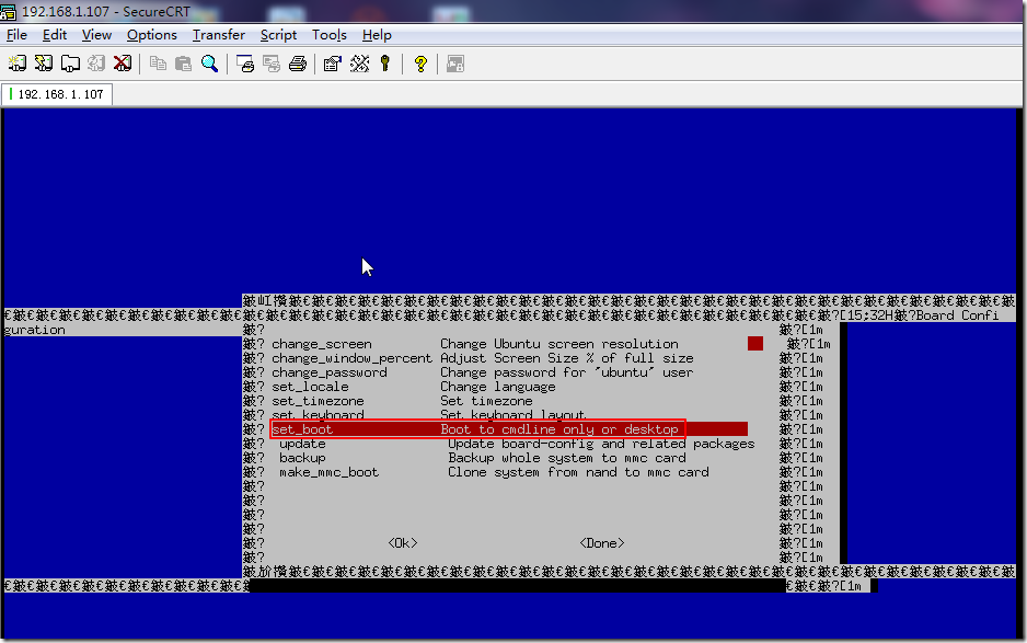 2.重新启动后,通过ssh2连接到板子上,然后去配置: