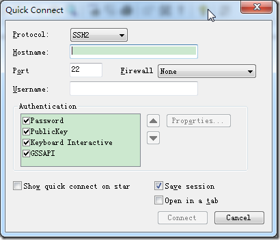 之后,会弹出,快速连接的设置窗口: