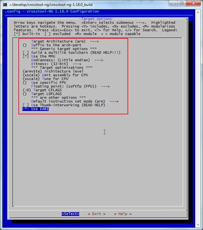 ct-ng menuconfig |