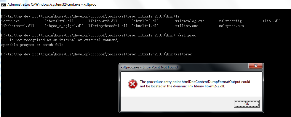 CLi@PC-CLI-1 ~/develop/docbook/tools/xsltproc_libxml2-2.8.0/bin $ which xsltproc /bin/xsltproc CLi@PC-CLI-1 ~/develop/docbook/tools/xsltproc_libxml2-2.8.0/bin $ xsltproc --version Using libxml 20901, libxslt 10127 and libexslt 816 xsltproc was compiled against libxml 20900, libxslt 10127 and libexslt 816 libxslt 10127 was compiled against libxml 20900 libexslt 816 was compiled against libxml 20900