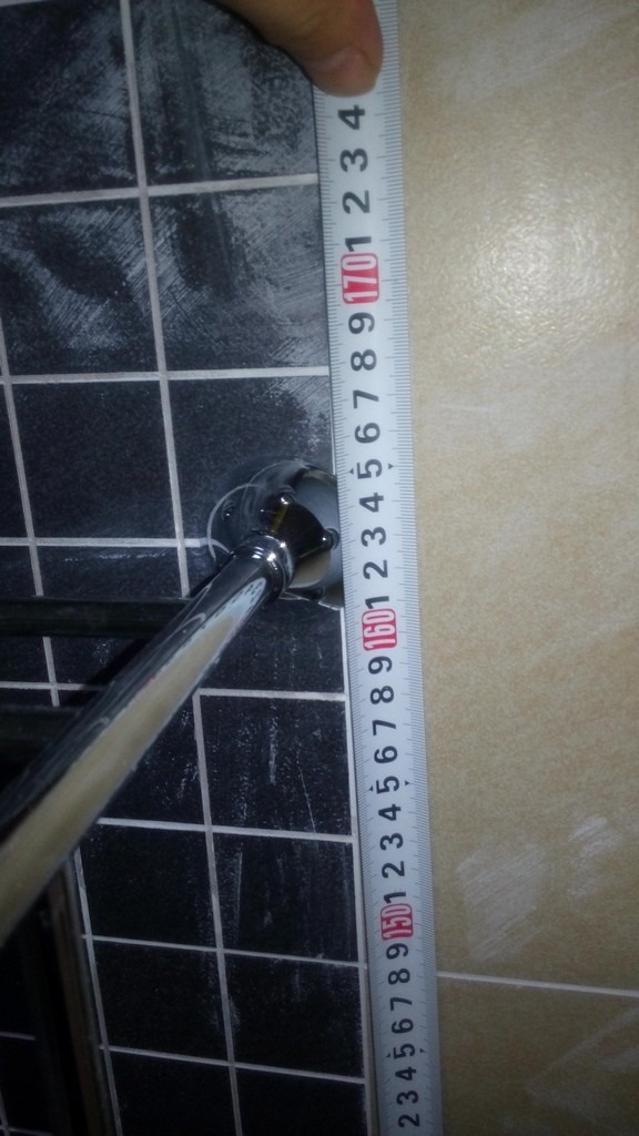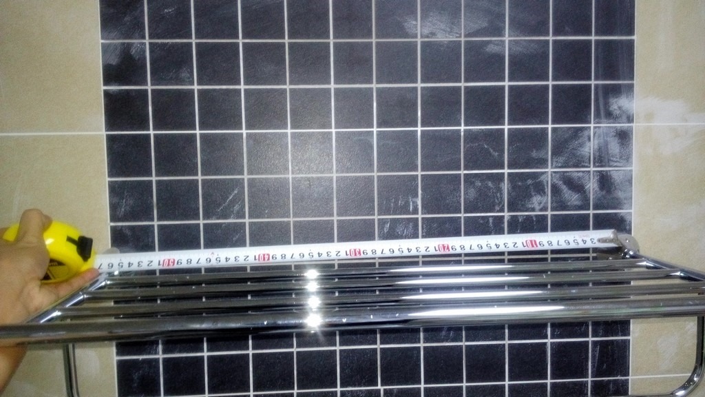 马桶上方,安装好的浴巾架的固定脚的高度是1610mm: