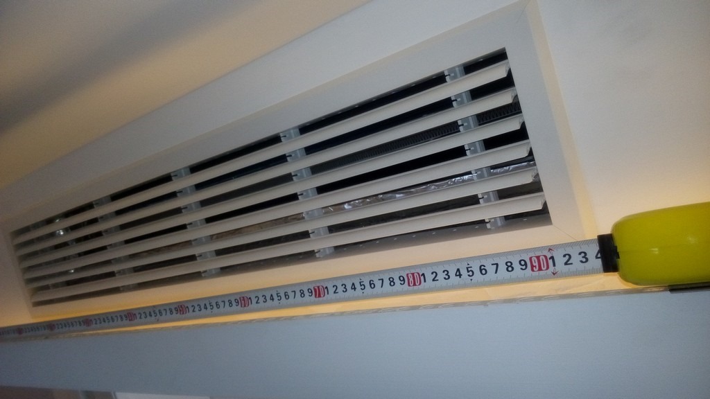 以及量客厅的风管机的出风口处的大小,以便之后去买合适尺寸的玻璃->用于把下吹的风挡的往前面吹,以便客厅南面的能吹到空调的风,方便空气流通和循环