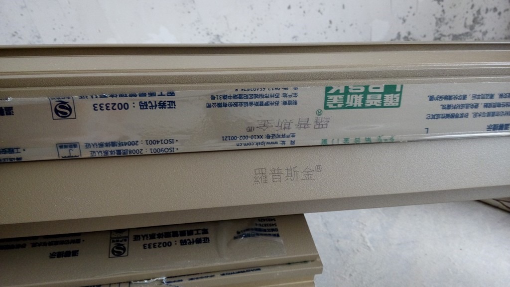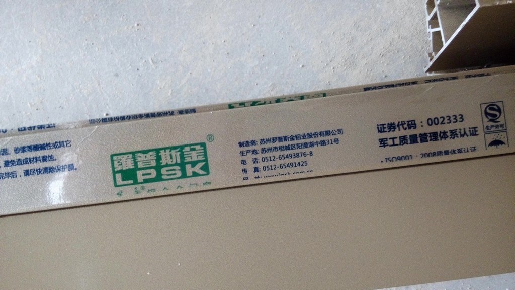 铝合金型材上面的塑料纸封贴上可以看到是罗普斯金: