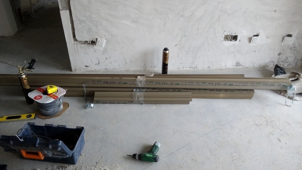 其中有个长一点的外框,由于电梯里放不下,还是麻烦师傅扛到13楼的。。。