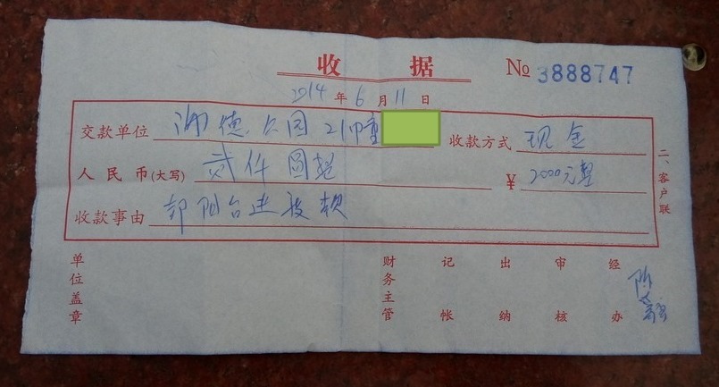 2000元的封阳台进度款