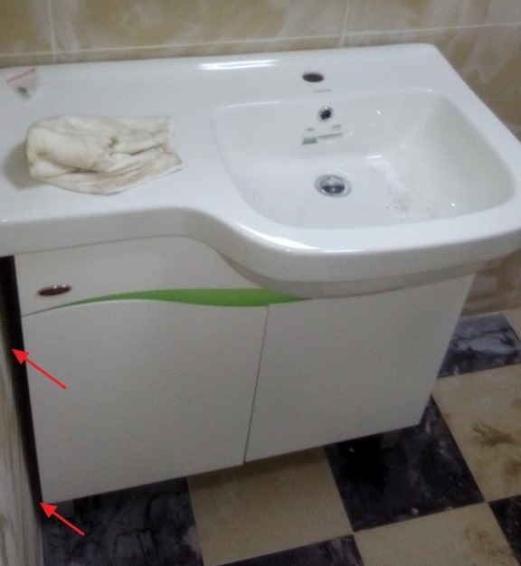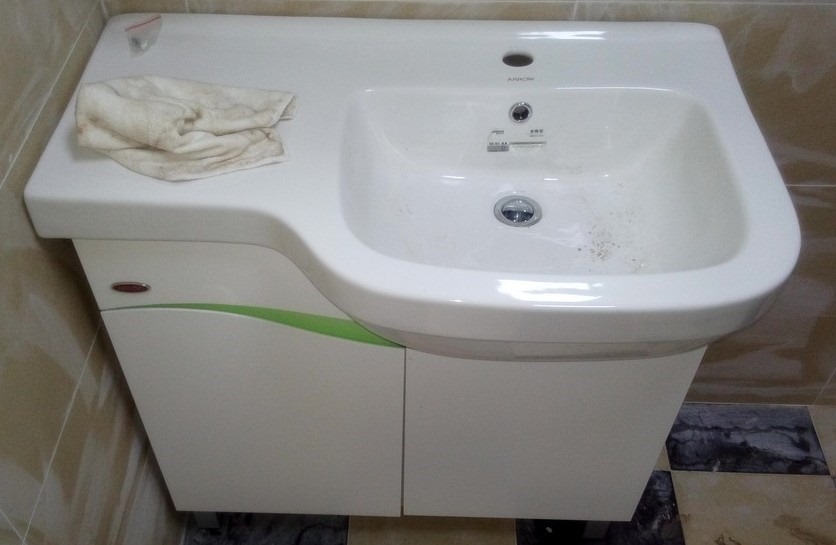 而被水电工给我安装好主柜后,把台盆放上去后,当时没注意有啥问题。