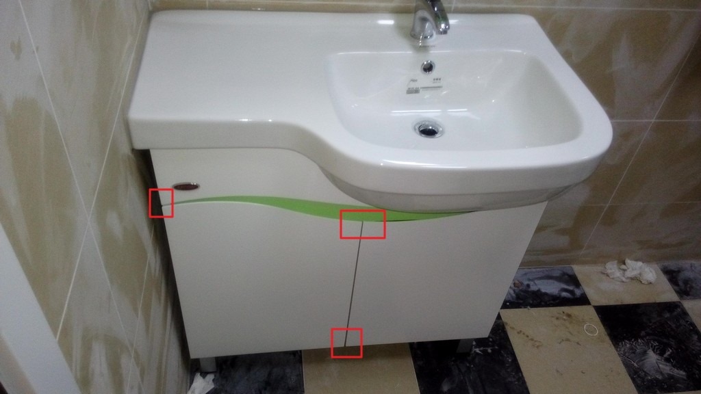 (注意,不是视觉差所导致的,实际上就是有空隙不均,是由于台盆柜不垂直导致的