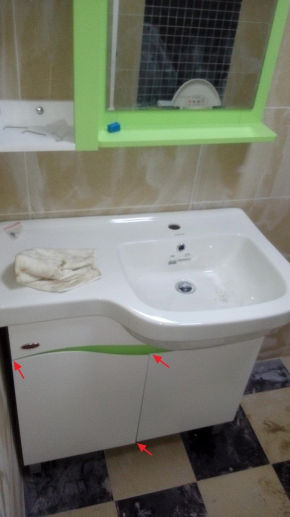 后来是梁师傅帮我发现了这个问题,然后把台盆搬下来,用螺丝刀调节了主柜的右上角的螺丝后,台盆再放上去,台盆和主柜就可以严丝合缝了,就用收案也不会晃动了
